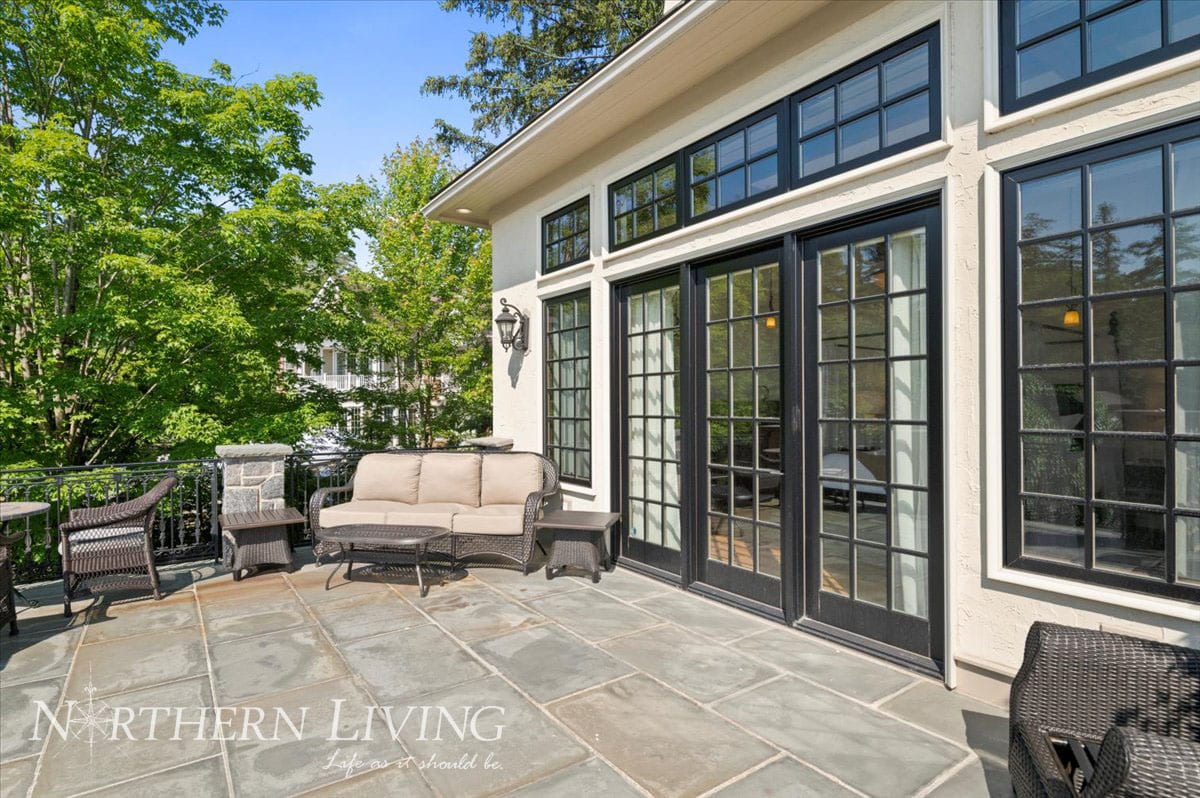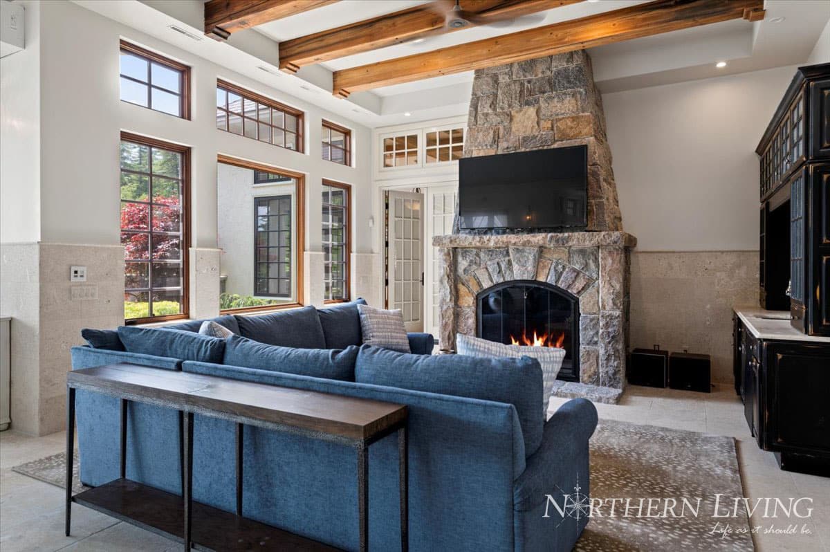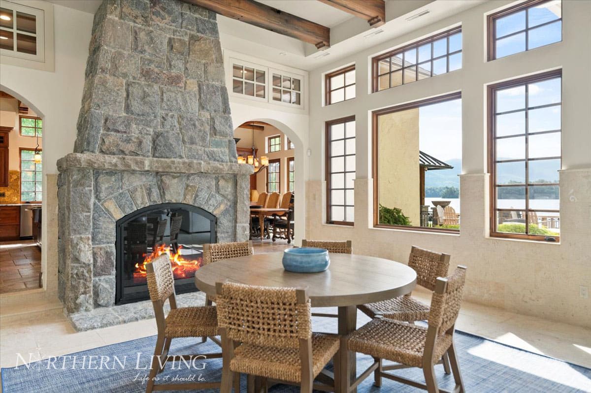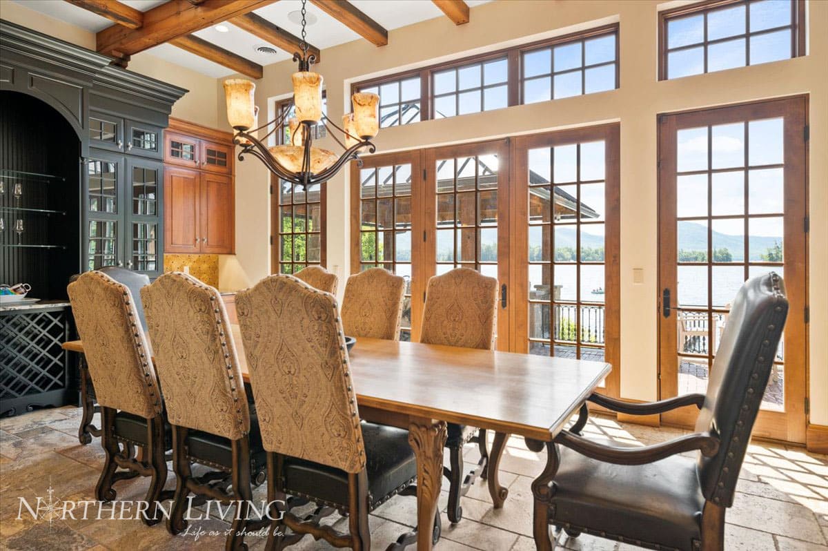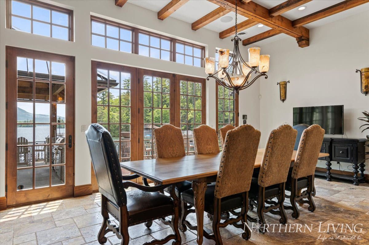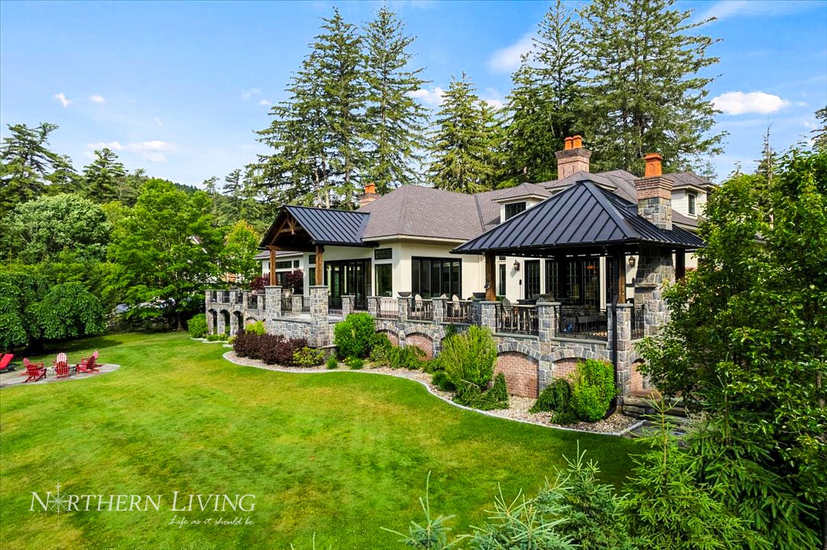 From here, you are steps away from 45 feet of a private beach with Adirondack chairs, loungers, and a paved-seating area off the sandy beach. Enjoy the beautiful Adirondacks while sitting around the custom-made fire pit. Bolton Manor offers direct lake access with dock space for four boats (up to 30′ long), four kayaks, and two paddleboards.